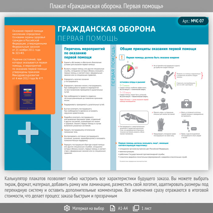 Плакат «Гражданская оборона. Первая помощь» (МЧС-07, 1 лист) в Сургуте купить