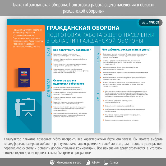 Плакат «Гражданская оборона. Подготовка работающего населения в области гражданской обороны» (МЧС-08, 1 лист) в Сургуте купить