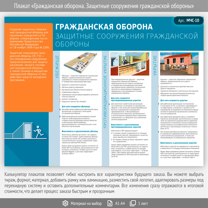 Плакат «Гражданская оборона. Защитные сооружения гражданской обороны» (МЧС-10, 1 лист) в Сургуте купить