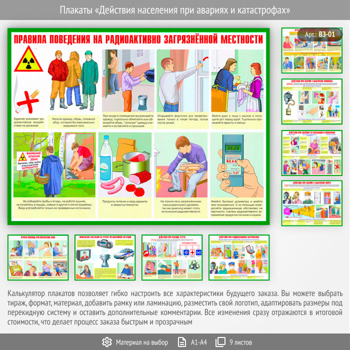 Плакаты «Действия населения при авариях и катастрофах» (ВЗ-01, 9 листов) в Сургуте купить