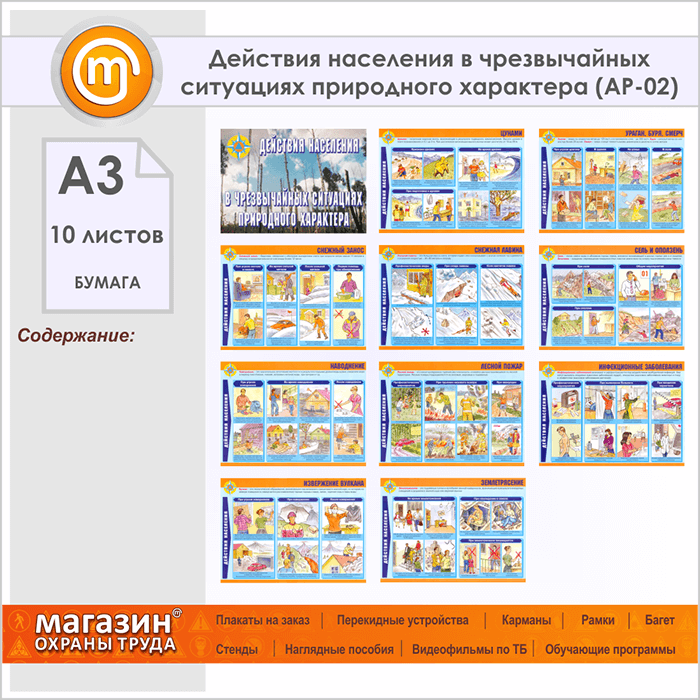 Плакаты «Действия населения в чрезвычайных ситуациях природного характера» (АР-02, бумага, А3, 10 листов) в Сургуте купить