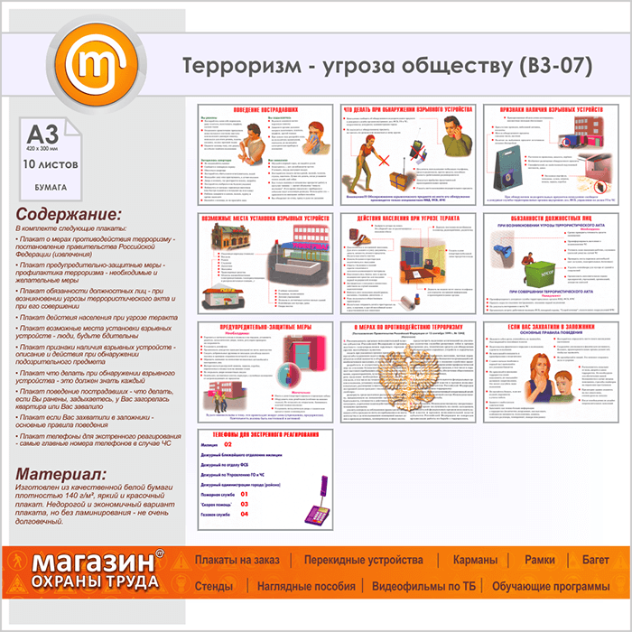 Плакаты «Терроризм - угроза обществу» (ВЗ-07, бумага, А3, 10 листов) в Сургуте купить