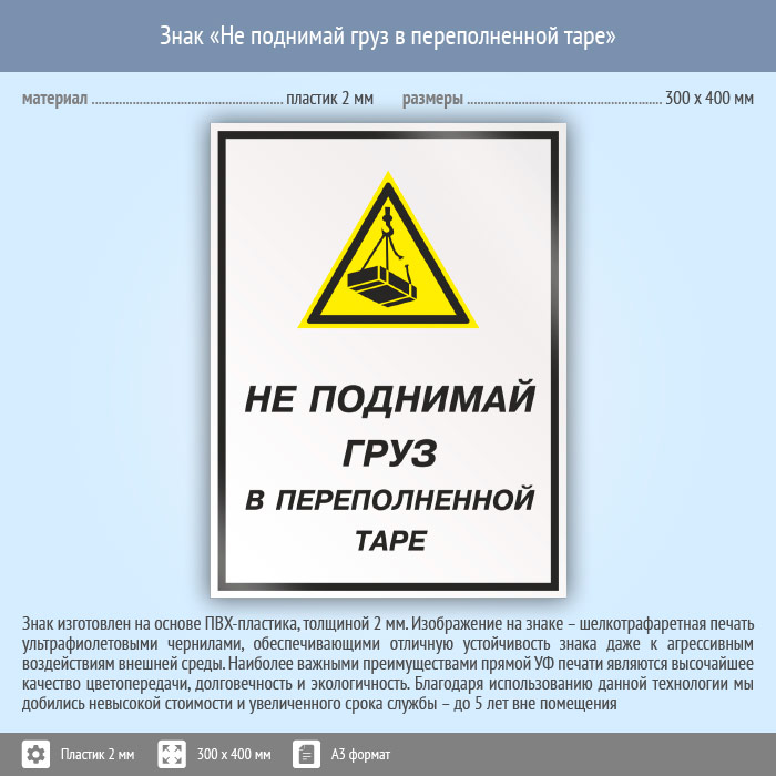 Знак «Не поднимай груз в переполненной таре», КЗ-26 (пластик, 300х400 мм) в Сургуте купить
