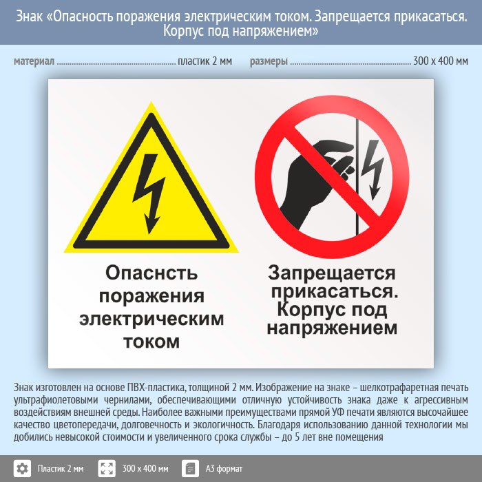 Знак «Опасность поражения электрическим током. Запрещается прикасаться. Корпус под напряжением», КЗ-47 (пластик, 400х300 мм) в Сургуте купить