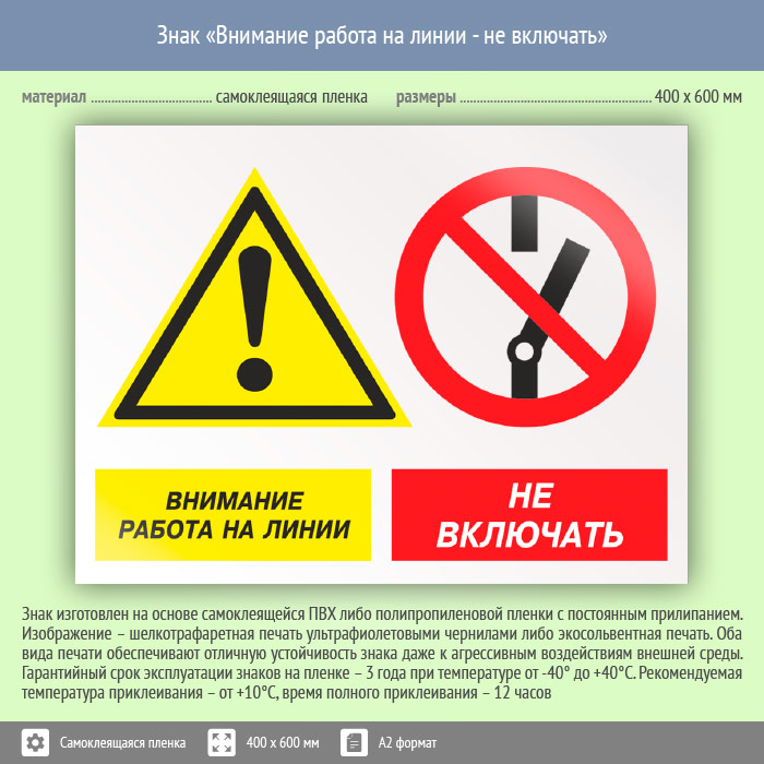 Знак «Внимание работа на линии - не включать», КЗ-16 (пленка, 600х400 мм) в Сургуте купить