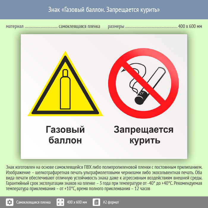Знак «Газовый баллон. Запрещается курить», КЗ-18 (пленка, 600х400 мм) в Сургуте купить