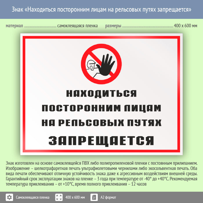 Знак «Находиться посторонним лицам на рельсовых путях запрещается», КЗ-25 (пленка, 600х400 мм) в Сургуте купить