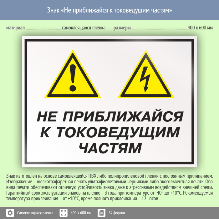 Знак «Не приближайся к токоведущим частям», КЗ-29 (пленка, 600х400 мм) в Сургуте купить