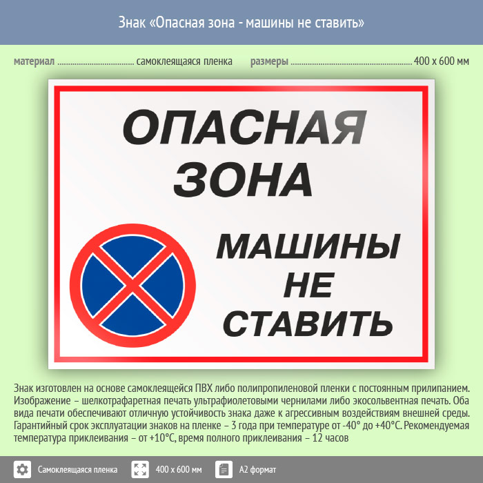 Знак «Опасная зона - машины не ставить», КЗ-32 (пленка, 600х400 мм) в Сургуте купить