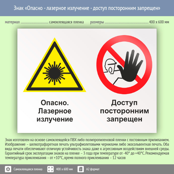 Знак «Опасно - лазерное излучение - доступ посторонним запрещен», КЗ-37 (пленка, 600х400 мм) в Сургуте купить