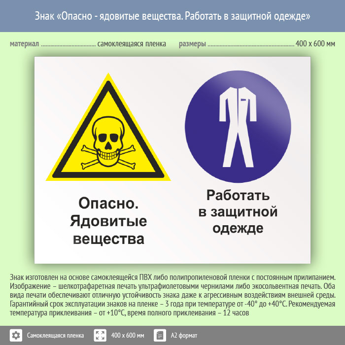 Знак «Опасно - ядовитые вещества. Работать в защитной одежде», КЗ-42 (пленка, 600х400 мм) в Сургуте купить