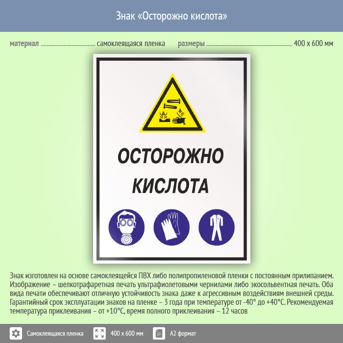 Знак «Осторожно кислота», КЗ-61 (пленка, 400х600 мм) в Сургуте купить