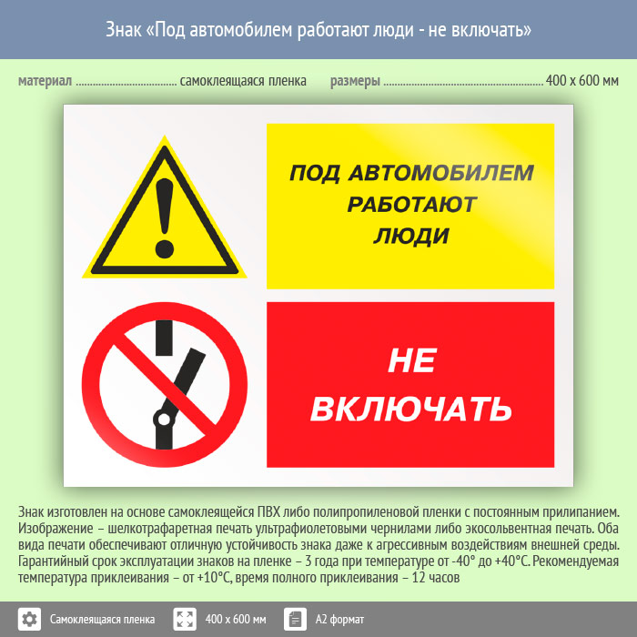 Знак «Под автомобилем работают люди - не включать», КЗ-65 (пленка, 600х400 мм) в Сургуте купить