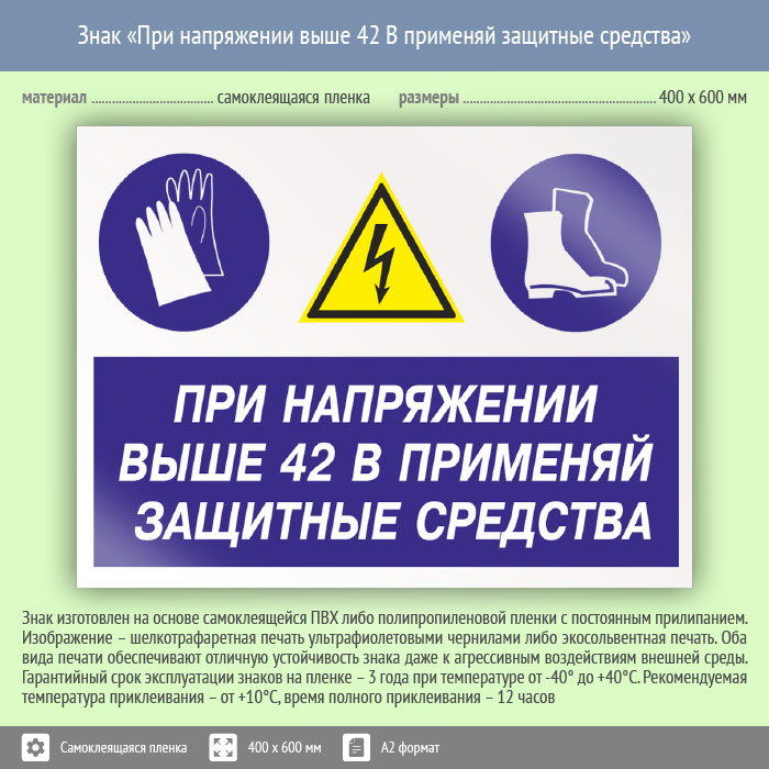 Знак «При напряжении выше 42 В применяй защитные средства», КЗ-72 (пленка, 600х400 мм) в Сургуте купить