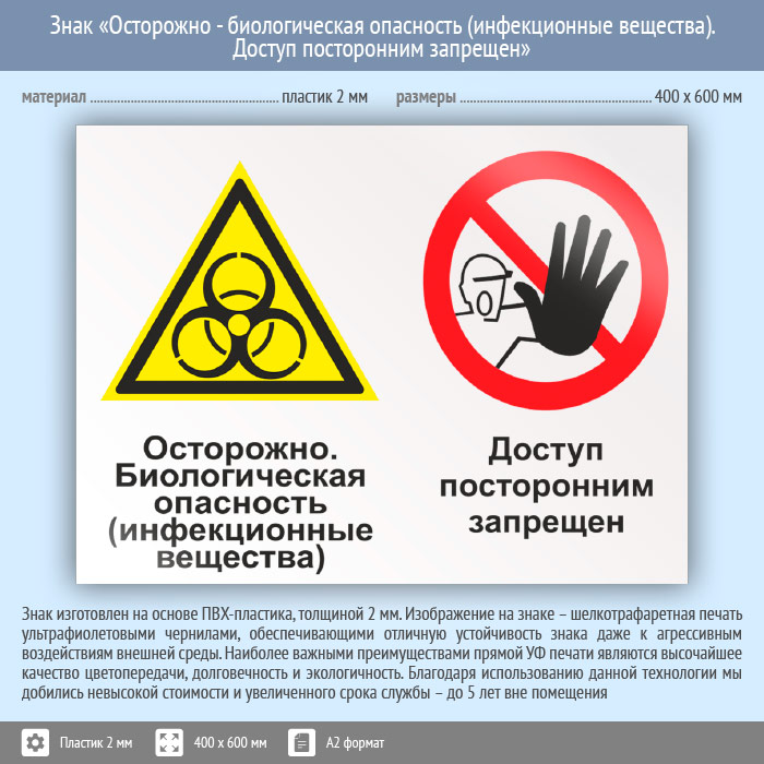 Знак «Осторожно - биологическая опасность (инфекционные вещества). Доступ посторонним запрещен», КЗ-51 (пластик, 600х400 мм) в Сургуте купить