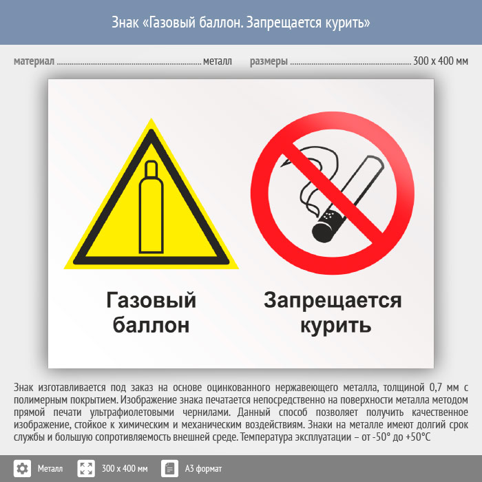 Знак «Газовый баллон. Запрещается курить», КЗ-18 (металл, 400х300 мм) в Сургуте купить