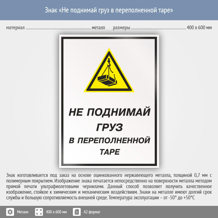 Знак «Не поднимай груз в переполненной таре», КЗ-26 (металл, 400х600 мм) в Сургуте купить