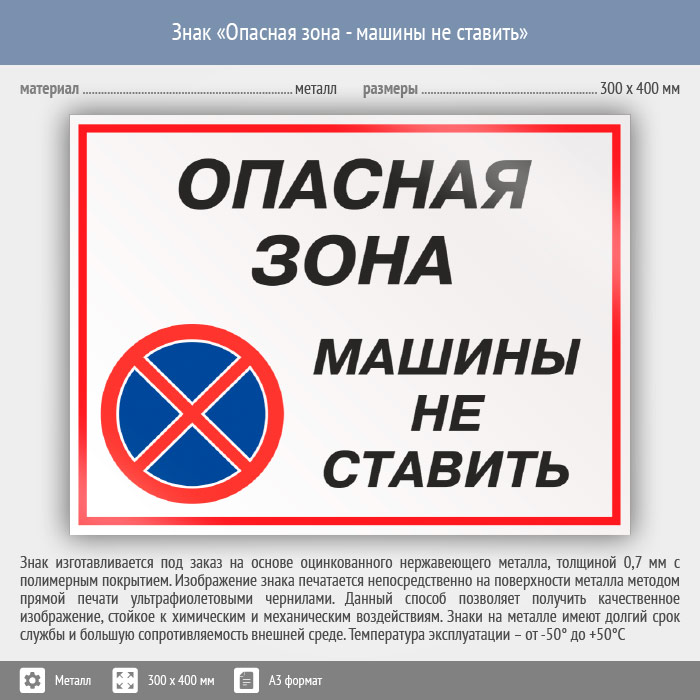 Знак «Опасная зона - машины не ставить», КЗ-32 (металл, 400х300 мм) в Сургуте купить