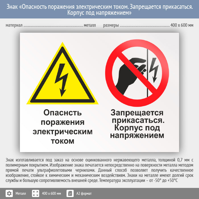 Знак «Опасность поражения электрическим током. Запрещается прикасаться. Корпус под напряжением», КЗ-47 (металл, 600х400 мм) в Сургуте купить