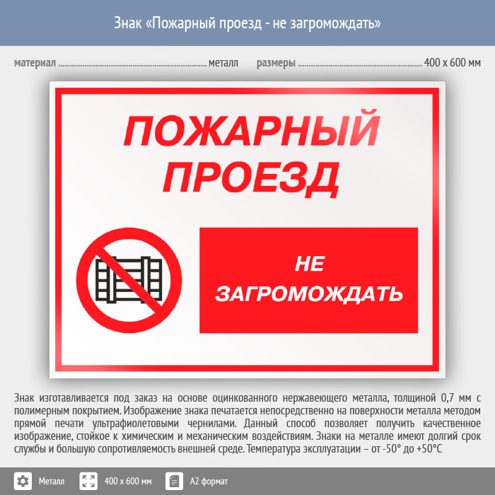 Знак «Пожарный проезд - не загромождать», КЗ-67 (металл, 600х400 мм) в Сургуте купить