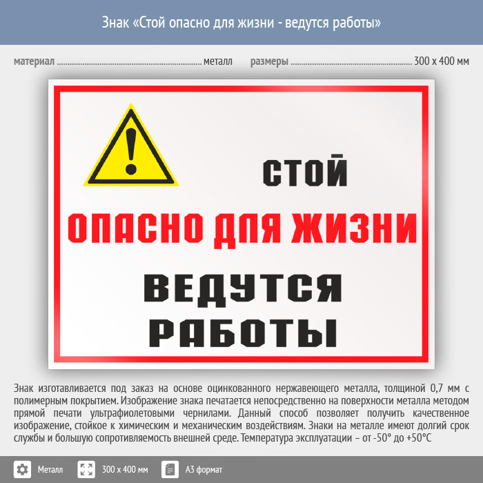 Знак «Стой опасно для жизни - ведутся работы», КЗ-86 (металл, 400х300 мм) в Сургуте купить