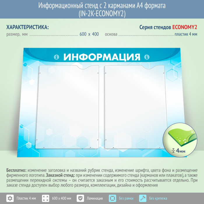 Информационный стенд с 2 карманами А4 формата (IN-2K-ECONOMY2) в Сургуте купить
