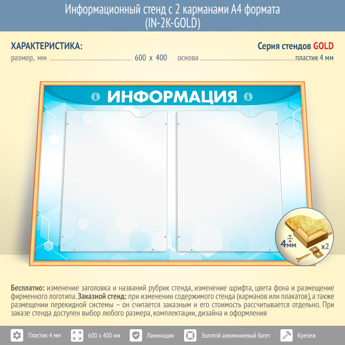 Информационный стенд с 2 карманами А4 формата (IN-2K-GOLD) в Сургуте купить