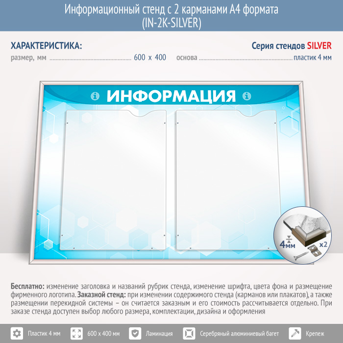 Информационный стенд с 2 карманами А4 формата (IN-2K-SILVER) в Сургуте купить