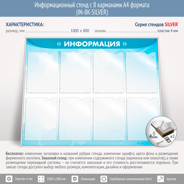 Информационный стенд с 8 карманами А4 формата (IN-8K-SILVER) в Сургуте купить