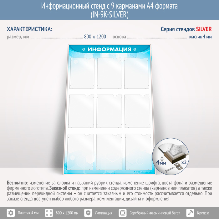 Информационный стенд с 9 карманами А4 формата (IN-9K-SILVER) в Сургуте купить
