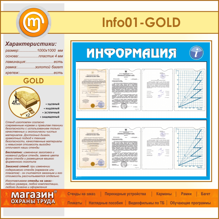 Стенд «Информация» с 8 карманами А4 формата (IN-01-GOLD) в Сургуте купить