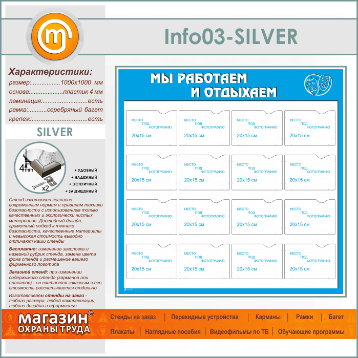 Стенд «Мы работаем и отдыхаем» с 16 карманами А5 формата (IN-03-SILVER) в Сургуте купить