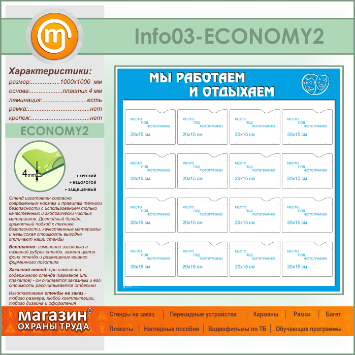 Стенд «Мы работаем и отдыхаем» с 16 карманами А5 формата (IN-03-ECONOMY2) в Сургуте купить