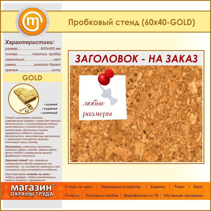 Пробковая доска с заголовком, 60х40 см (IN-06-GOLD) в Сургуте купить