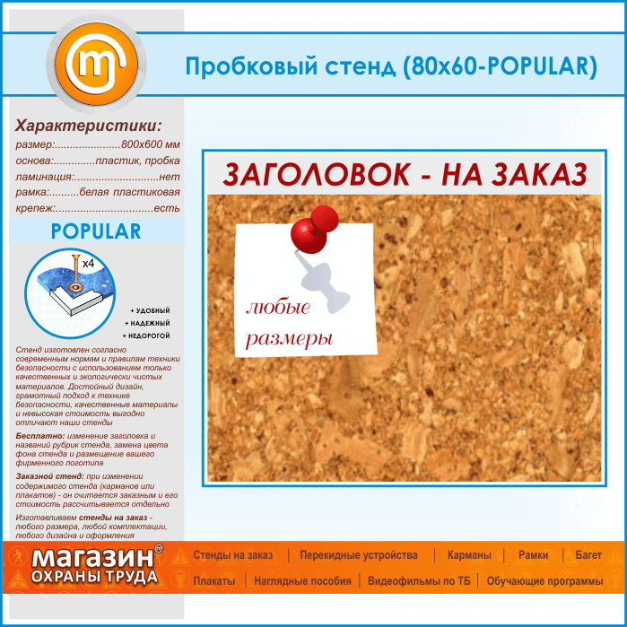 Пробковая доска с заголовком, 80х60 см (IN-06-POPULAR) в Сургуте купить