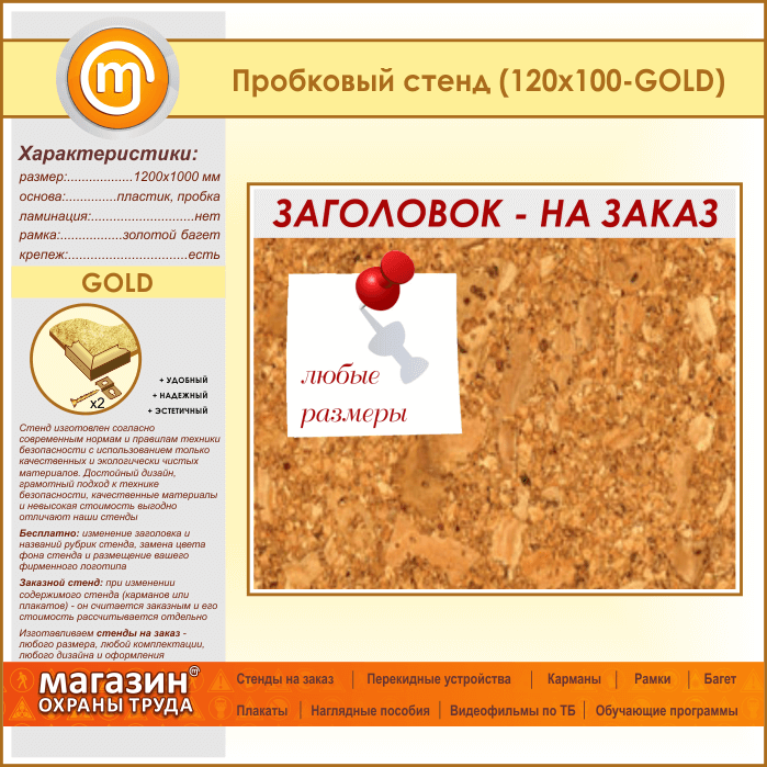 Пробковая доска с заголовком, 120х100 см (IN-06-GOLD) в Сургуте купить
