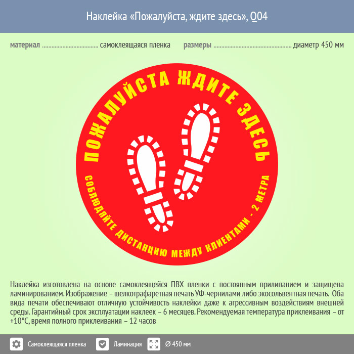 Наклейка на пол «Пожалуйста, ждите здесь», Q04 (пленка c ламинированием, диаметр 450 мм) в Сургуте купить