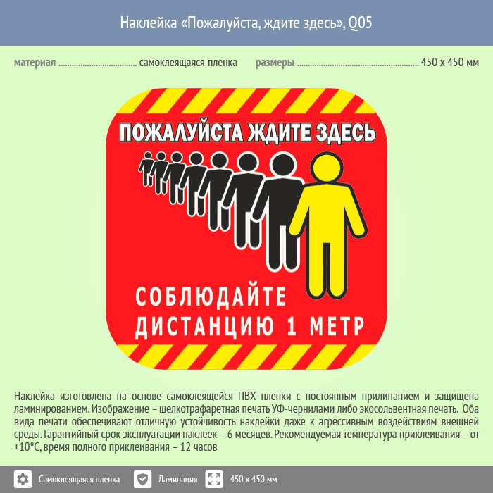 Наклейка на пол «Пожалуйста, ждите здесь», Q05 (пленка c ламинированием, 450х450 мм) в Сургуте купить
