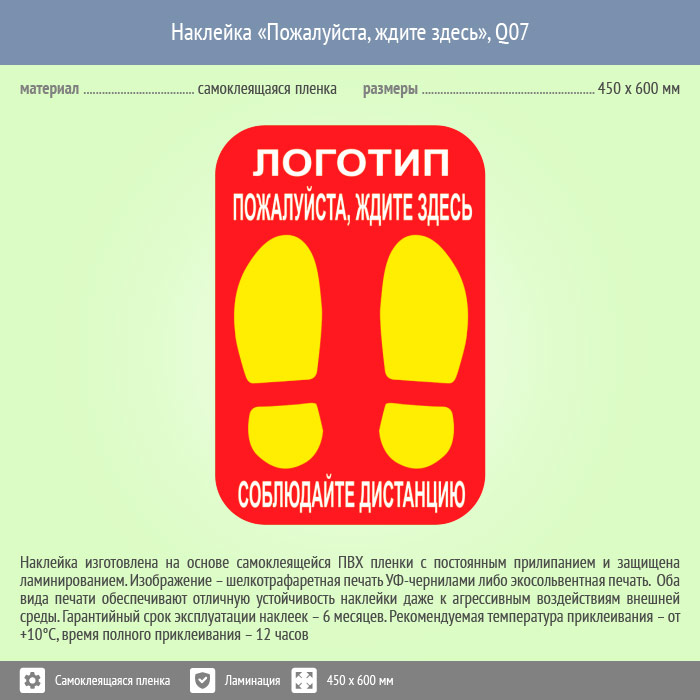 Наклейка на пол «Пожалуйста, ждите здесь», Q07 (пленка c ламинированием, 450х600 мм) в Сургуте купить