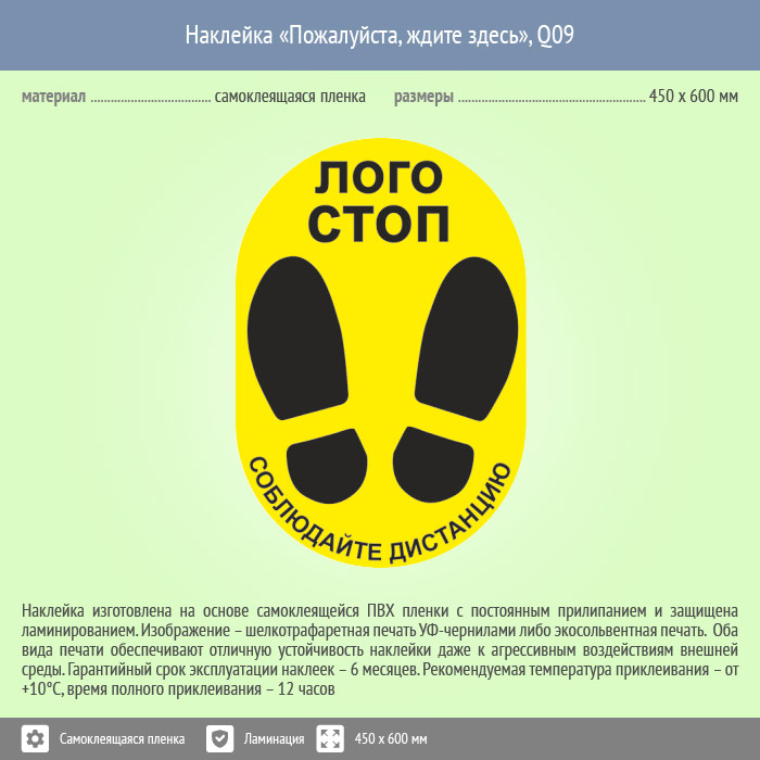 Наклейка на пол «Пожалуйста, ждите здесь», Q09 (пленка c ламинированием, 450х600 мм) в Сургуте купить