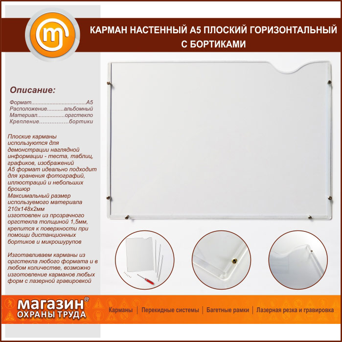 Карман настенный А5 плоский горизонтальный с бортиками в Сургуте купить