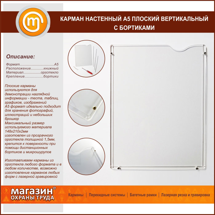 Карман настенный А5 плоский вертикальный с бортиками в Сургуте купить