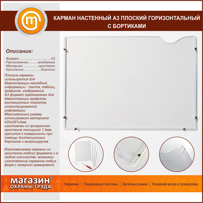 Карман настенный А3 плоский горизонтальный с бортиками в Сургуте купить