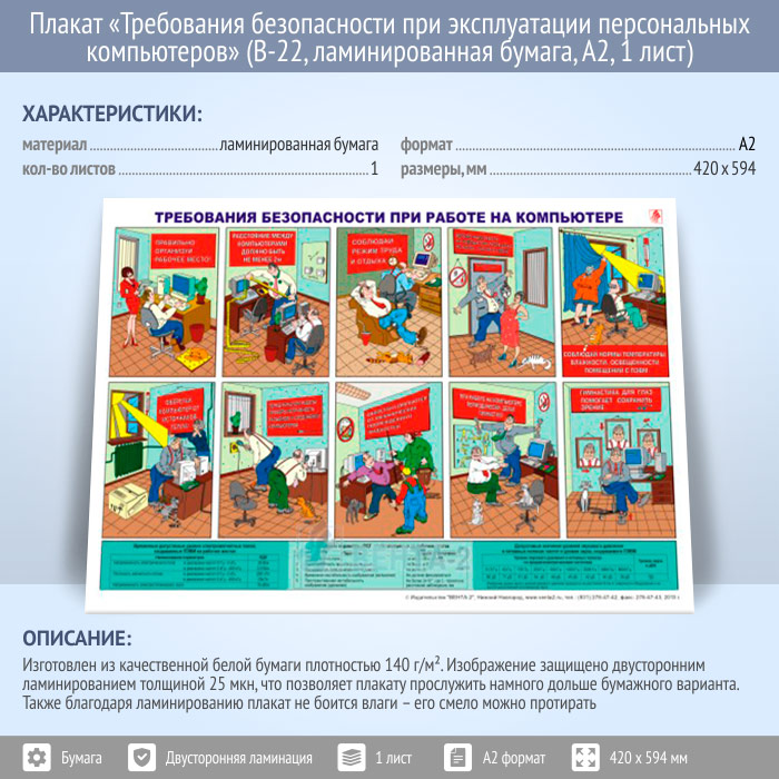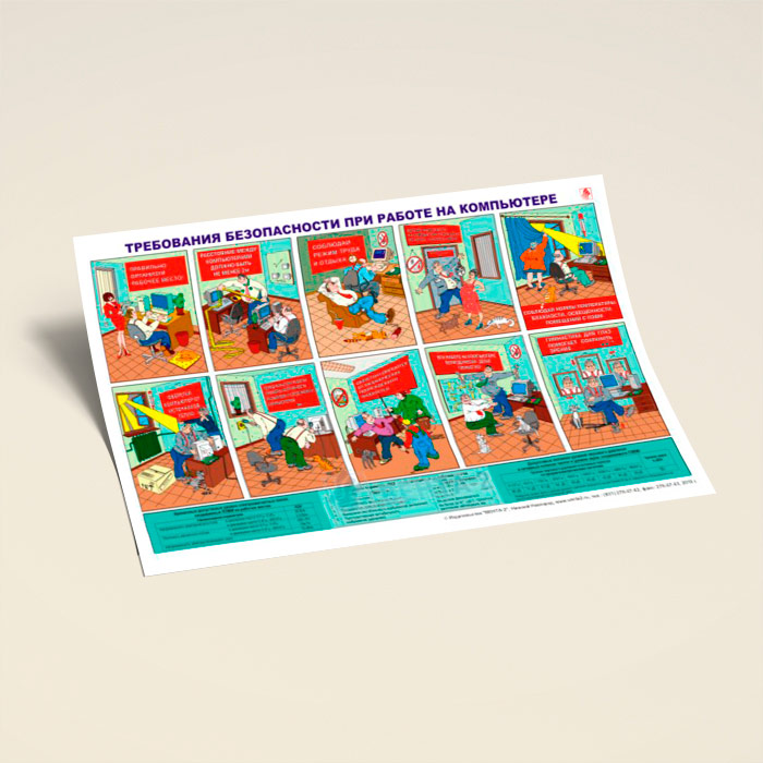 Плакат «Требования безопасности при эксплуатации персональных компьютеров» (В-22, ламинированная бумага, А2, 1 лист) в Сургуте купить
