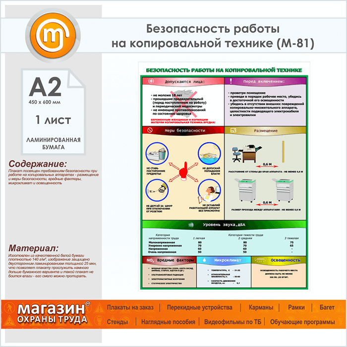 Плакат «Безопасность работы на копировальной технике» (М-81, ламинированная бумага, А2, 1 лист) в Сургуте купить