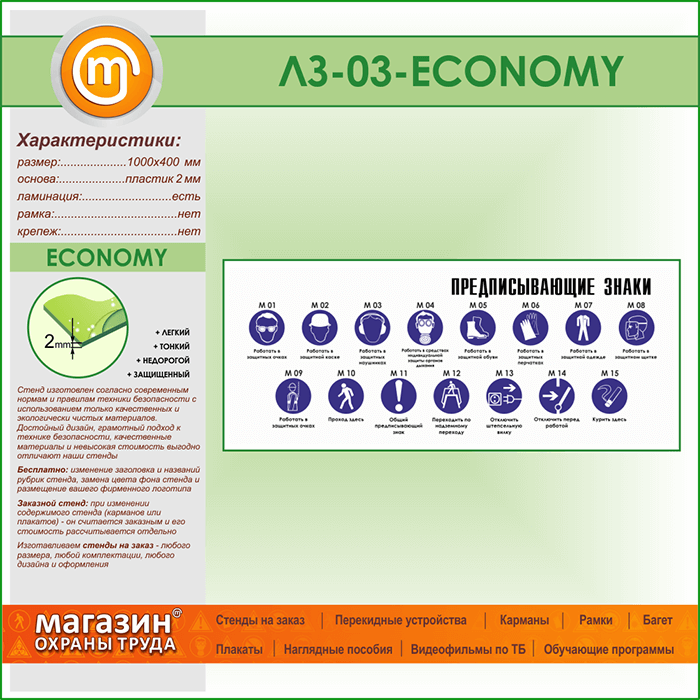 Стенд «Предписывающие знаки» (LZ-03-ECONOMY) в Сургуте купить