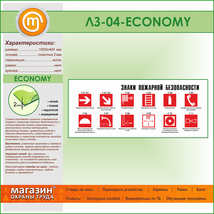 Стенд «Знаки пожарной безопасности» (LZ-04-ECONOMY) в Сургуте купить