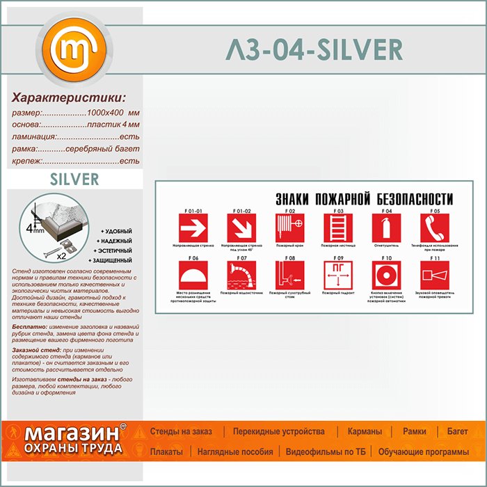 Стенд «Знаки пожарной безопасности» (LZ-04-SILVER) в Сургуте купить