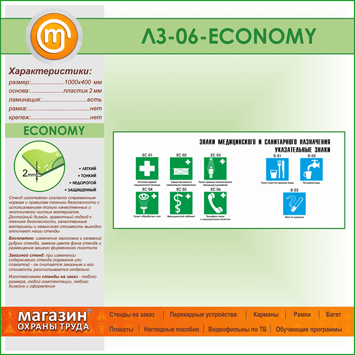Стенд «Знаки медицинского и санитарного назначения. Указательные знаки» (LZ-06-ECONOMY) в Сургуте купить