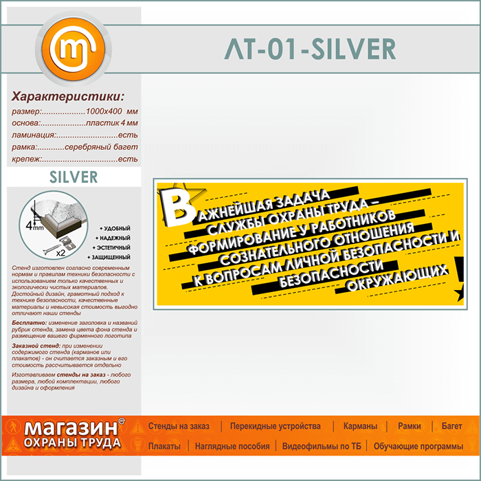 Лозунг «Важнейшая задача службы охраны труда...» (LT-01-SILVER) в Сургуте купить